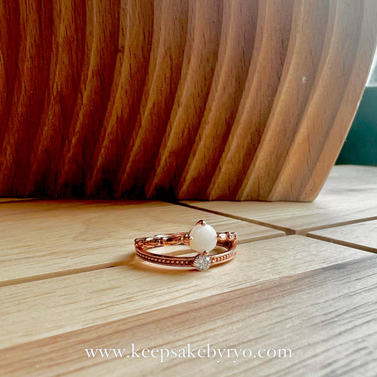 SOLITAIRE: DELIA DUOTONE DOUBLE BAND RING WITH HEART INCLUSION STONE