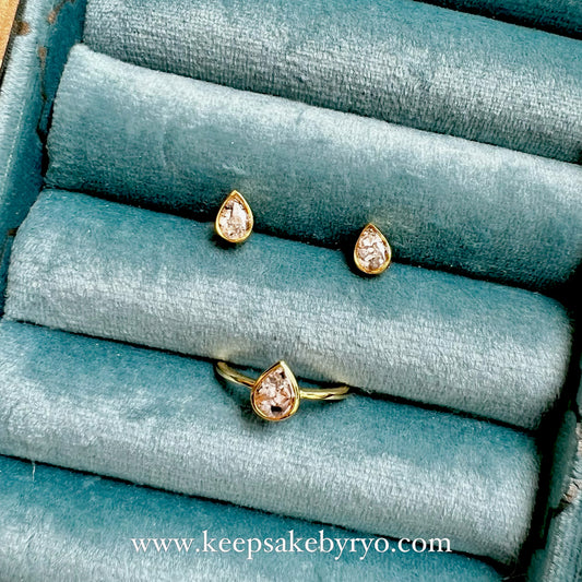 ASHES TEARDROP BEZEL STUD EARRINGS