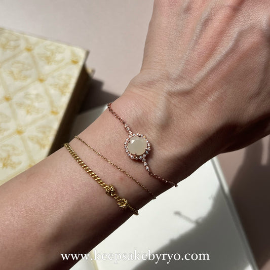 满月金 FULL MONTH GOLD & 百日金 100 DAYS GOLD: BEZEL BRACELET WITH OVAL INCLUSION STONE