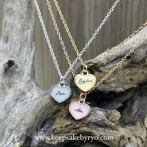 A beautiful heart shaped necklace with customizable name. One for your child so that you will always be by their side. One for Mummy, cause it is just too cute!