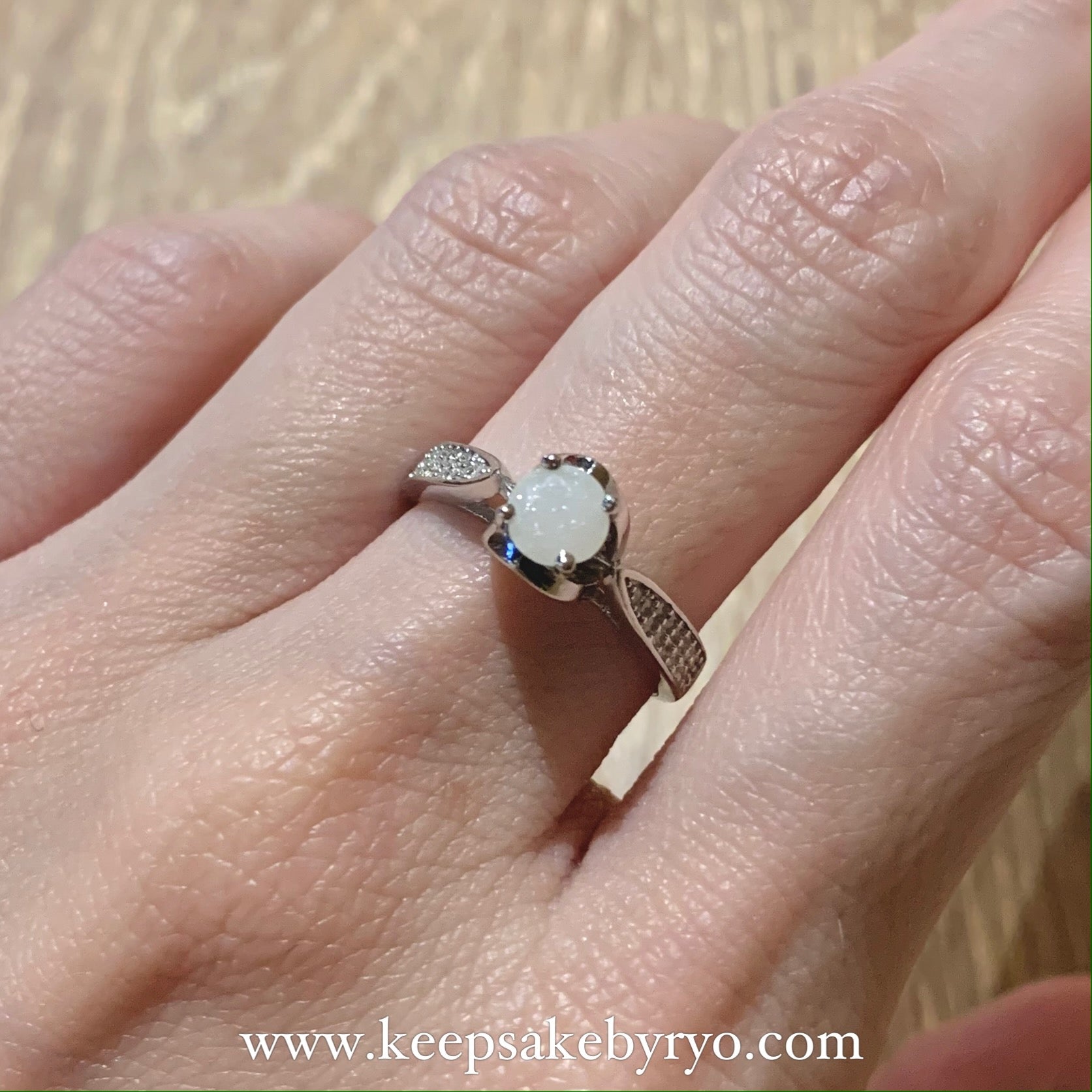 A classic solitaire ring with a pave band, and a peek-a-boo accent under the main breastmilk stone.