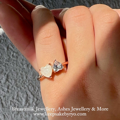 SOLITAIRE: MAIA BREASTMILK AND BIRTHSTONE DUO HEARTS RING